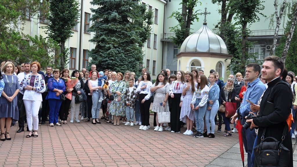 На подвір’ї університету, біля пам’ятника Василеві Стефанику, на святковий захід зібралися близько чотирьох сотень першокурсників, їх батьки, ректор ПНУ Ігор Цепенда, директор Івано-Франківського фахового коледжу ПНУ Юрій Москаленко, викладачі, працівники та випускники коледжу. Серед почесних гостей – ректор Херсонського державного університету Олександр Співаковський, митрополит Івано-Франківський та Галицький ПЦУ Владика Іоасаф та цьогорічна випускниця коледжу, юна письменниця, громадська активістка, кулеметниця одного з підрозділів 72-ї окремої механізованої бригади імені Чорних Запорожців Оксана Рубаняк.