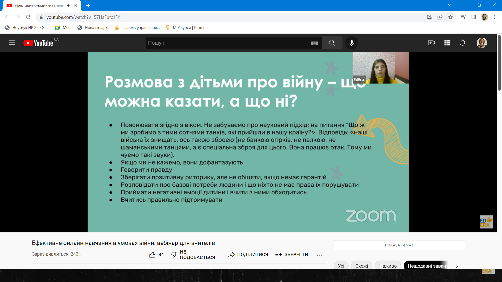 Участь у вебінарі «Ефективне онлайн-навчання в умовах війни»