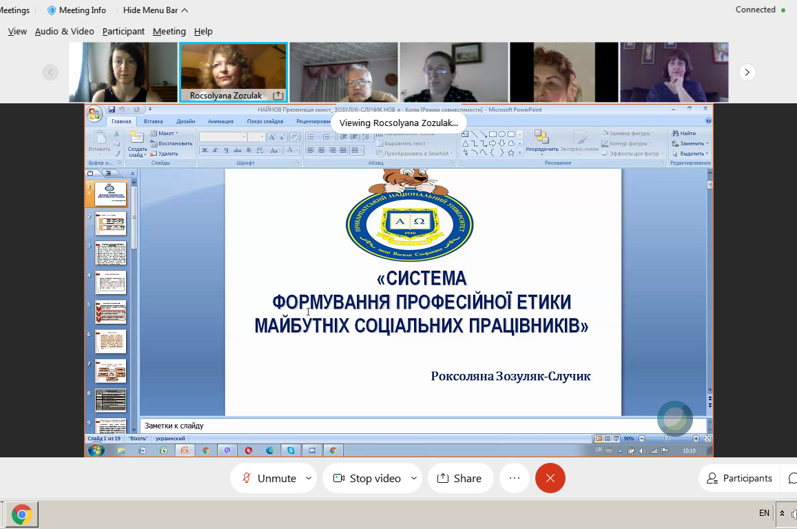 Викладачка кафедри Роксоляна Василівна Зозуляк-Случик 06.04.2021 року виступила на секційному засіданні педагогічного факультету з доповіддю «Система формування професійної етики майбутніх соціальних працівників».
