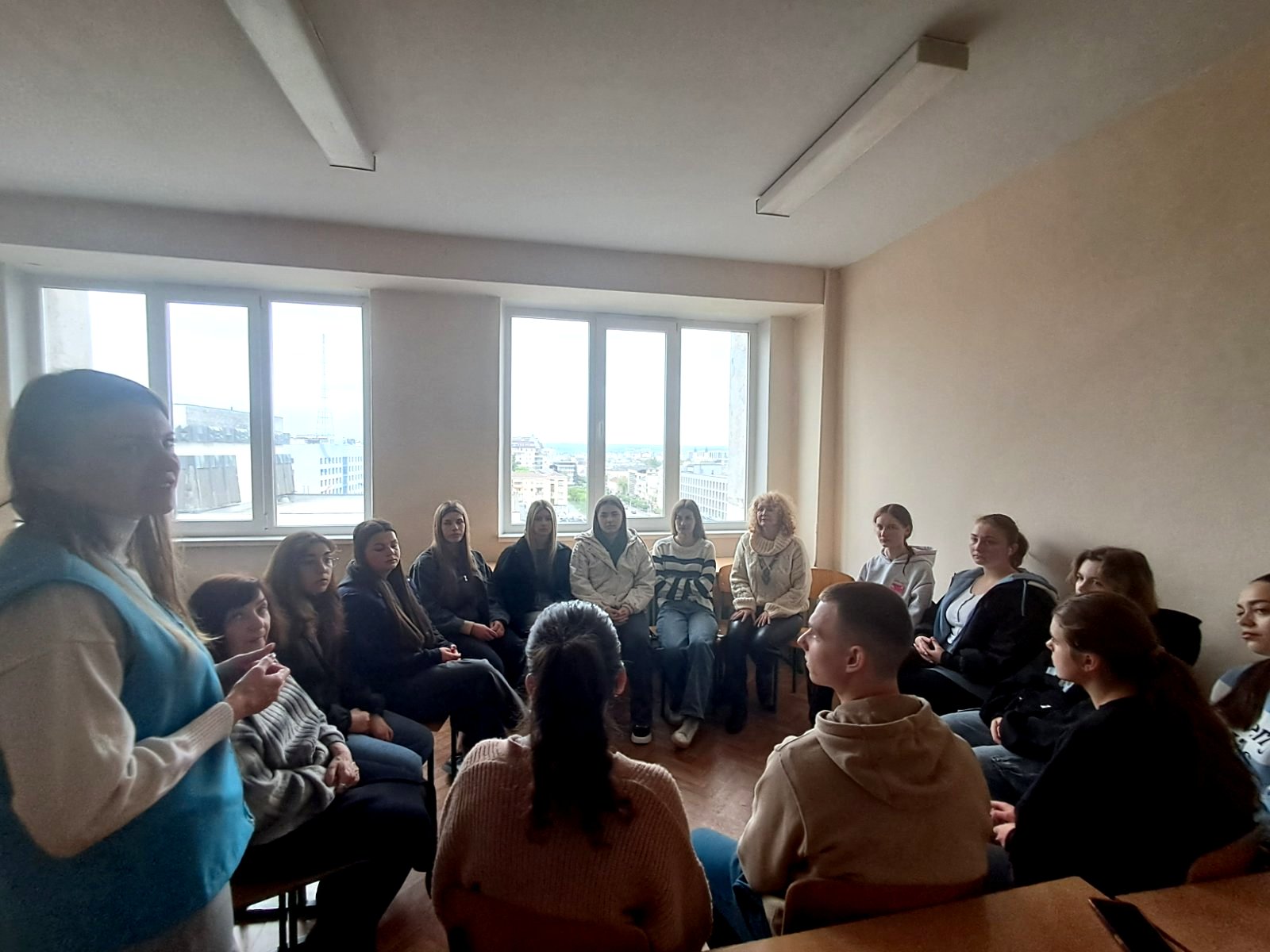 Восьмого травня у межах вивчення дисциплін «Основи соціалізації особистості», «Психологія розвитку людини» та «Соціальна профілактика» зі студентами 1-2-го курсів спеціальності «Соціальна робота» проведено тренігове заняття «Неконфліктне спілкування та гендерний підхід під час надання соціальних послуг». Провела його Юлія Купріянова – психологиня БФ «Рокада», соціальна працівниця та експертка із запобігання та протидії гендерно зумовленому насильству.