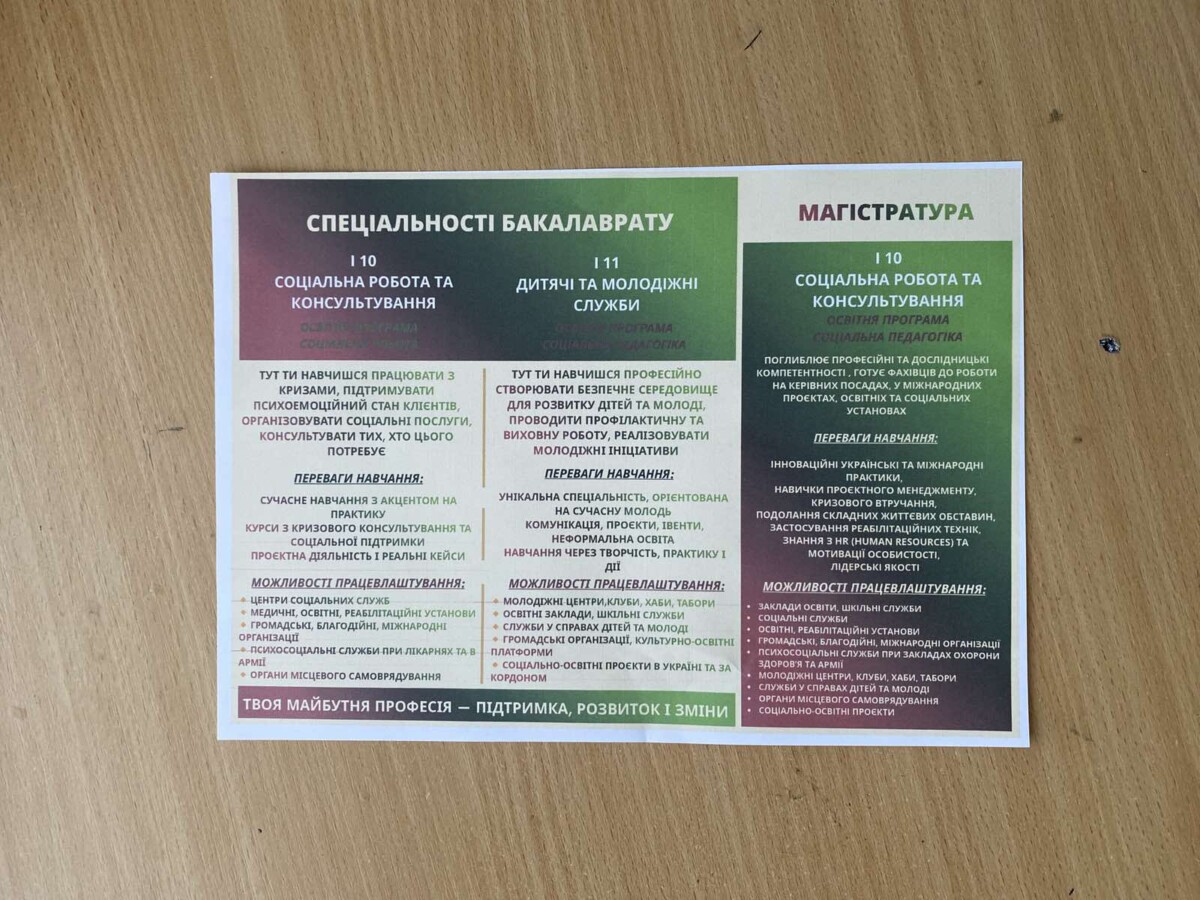 Профорієнтатори наголосили, що обираючи соціальну сферу, абітурієнти обирають можливість професійно змінювати світ на краще, а соціальна сфера є фундаментом стійкості України в часи воєнних викликів.