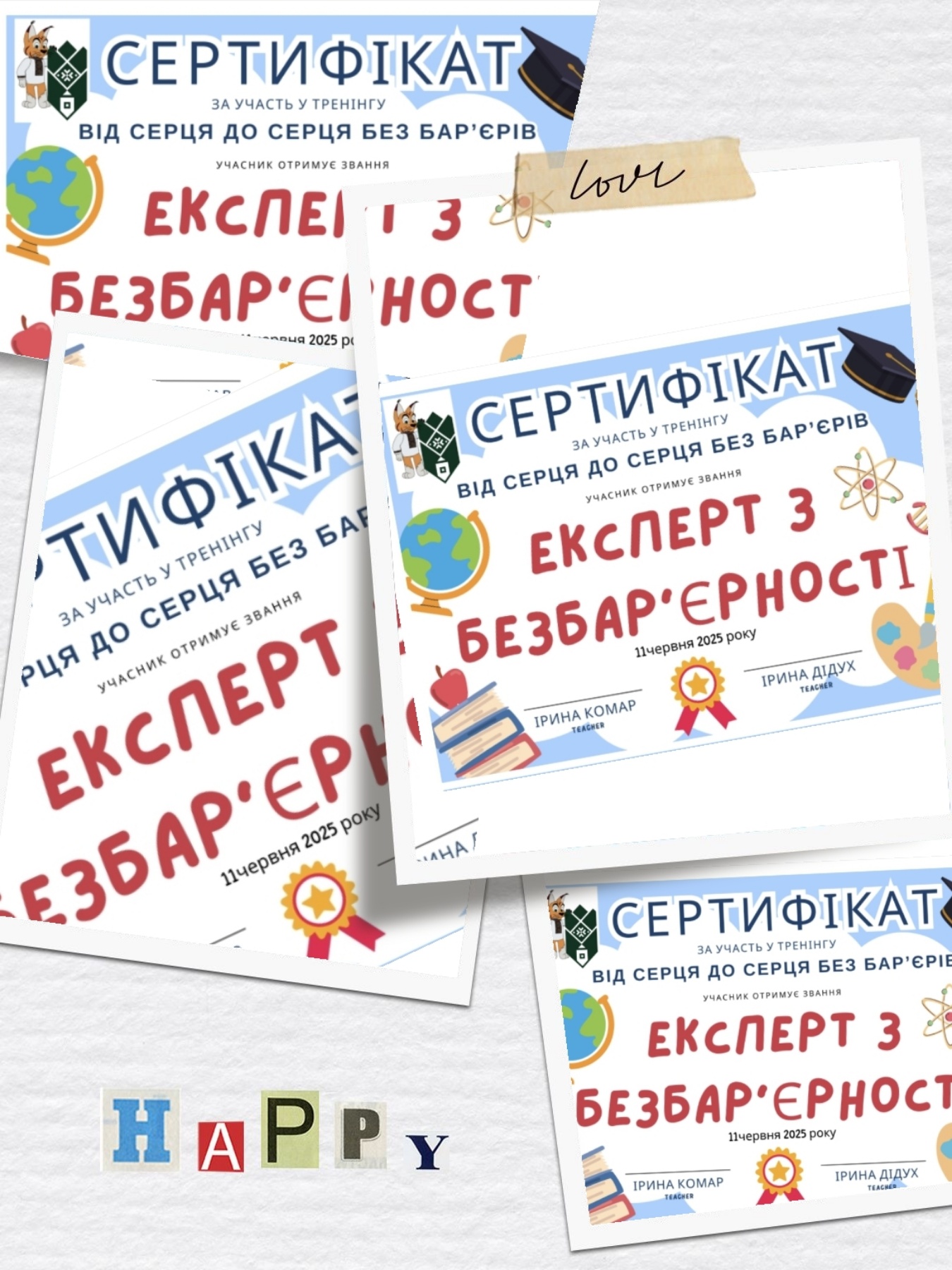По завершенні заходу всі учасники отримали сертифікати “Експерт з безбар’єрності”, що символізують не лише отримані знання, а й готовність змінювати простір навколо себе на краще.