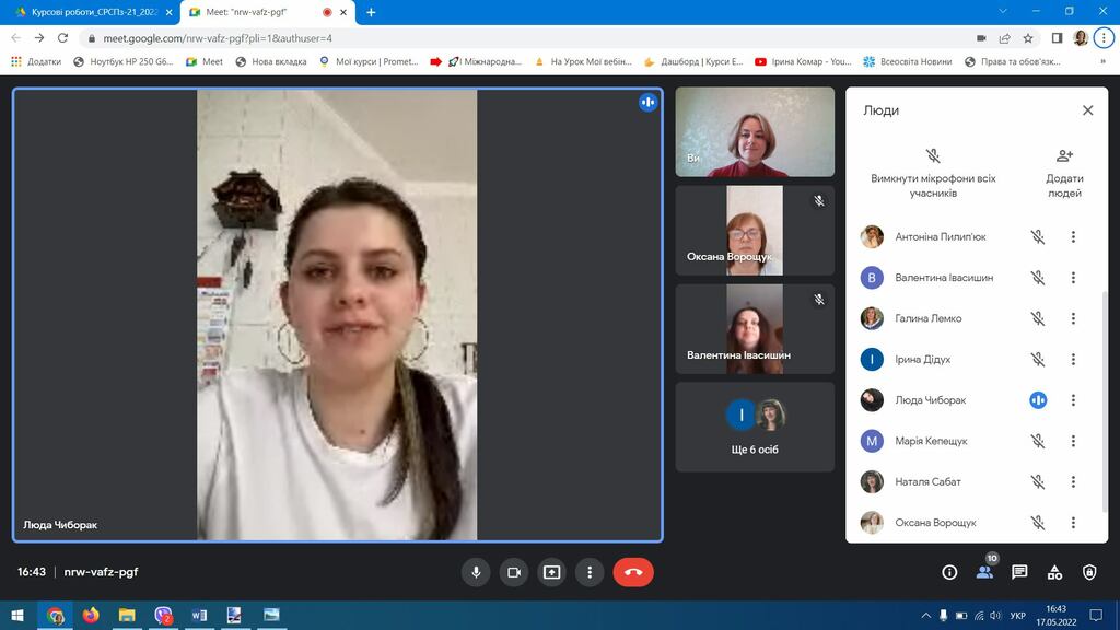 17 травня відбувся захист курсових робіт студентів ОП “Соціальна педагогіка” 2 курсу заочної форми навчання. Комісія, у складі Гаранта освітньої програми канд.пед.наук, доцента Ворощук О.Д. та викладачів, канд.пед.наук., доцентів Лемко Г.І. та Комар І.В., заслухала доповіді студентів, отримала відповіді на додаткові запитання, познайомилася з результатами досліджень. Варто наголосити, що це перша наукова робота другокурсників, підготовка якої цьогоріч була ще й доповнена перевіркою на плагіат. Усі роботи групи СРСПз-21 успішно її пройшли! Щиро вітаємо студентів та їхніх наукових керівників з успішним захистом! Дякуємо колегам за цікаві теми робіт, підтримку студентів позитивними відгуками та оцінками, а також участь у роботі комісії!