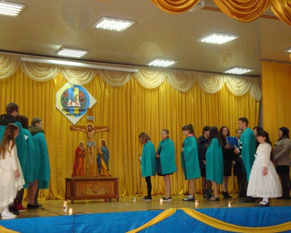 У вівторок, 16 квітня, у рамках тижня Духовної віднови в актовій залі педагогічного факультету (вул. С. Бандери, 1) за ініціативою кафедри соціальної педагогіки та соціальної роботи проведено особливу Хресну Дорогу – Хресну Дорогу ненародженої дитини у виконанні Марійської дружини с. Красна Надвірнянського району (парох о. Іван Бойко). Це вже не перша зустріч студентів та членів станової церковної організації під проводом о. І. Бойка. Такі глибокодуховні дійства, які доносять до нас істину Любові до людини і життя, проводилися членами Марійської дружини й у попередні роки на запрошення відповідальної за виховну роботу доц. Русин Г. А.