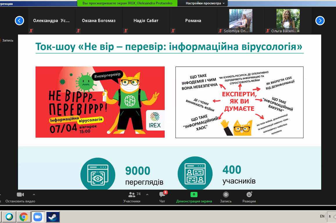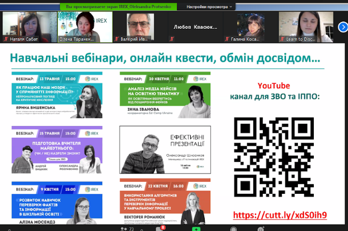 Своєрідні підсумки було підведено на онлайн-зустрічі 17 грудня, у якій брали участь більше 70-ти учасників. Так, Ігор Балуба – керівник експертної групи з питань розвитку кваліфікацій, освіти дорослих та педагогічної освіти Міністерства освіти і науки України – акцентував на важливості навичок критичного мислення та розвитку їх в учнів і студентів. У виступах модераторів Любові Кваснюк, Олени Тараненко та учасників зустрічі йшлося про те, що проєкт сприяв підвищенню рівня підготовки й зміцненню потенціалу вчителів і викладачів для розвитку ефективної сталої моделі інтеграції навичок критичного сприйняття інформації в навчальний процес освітніх закладів України.