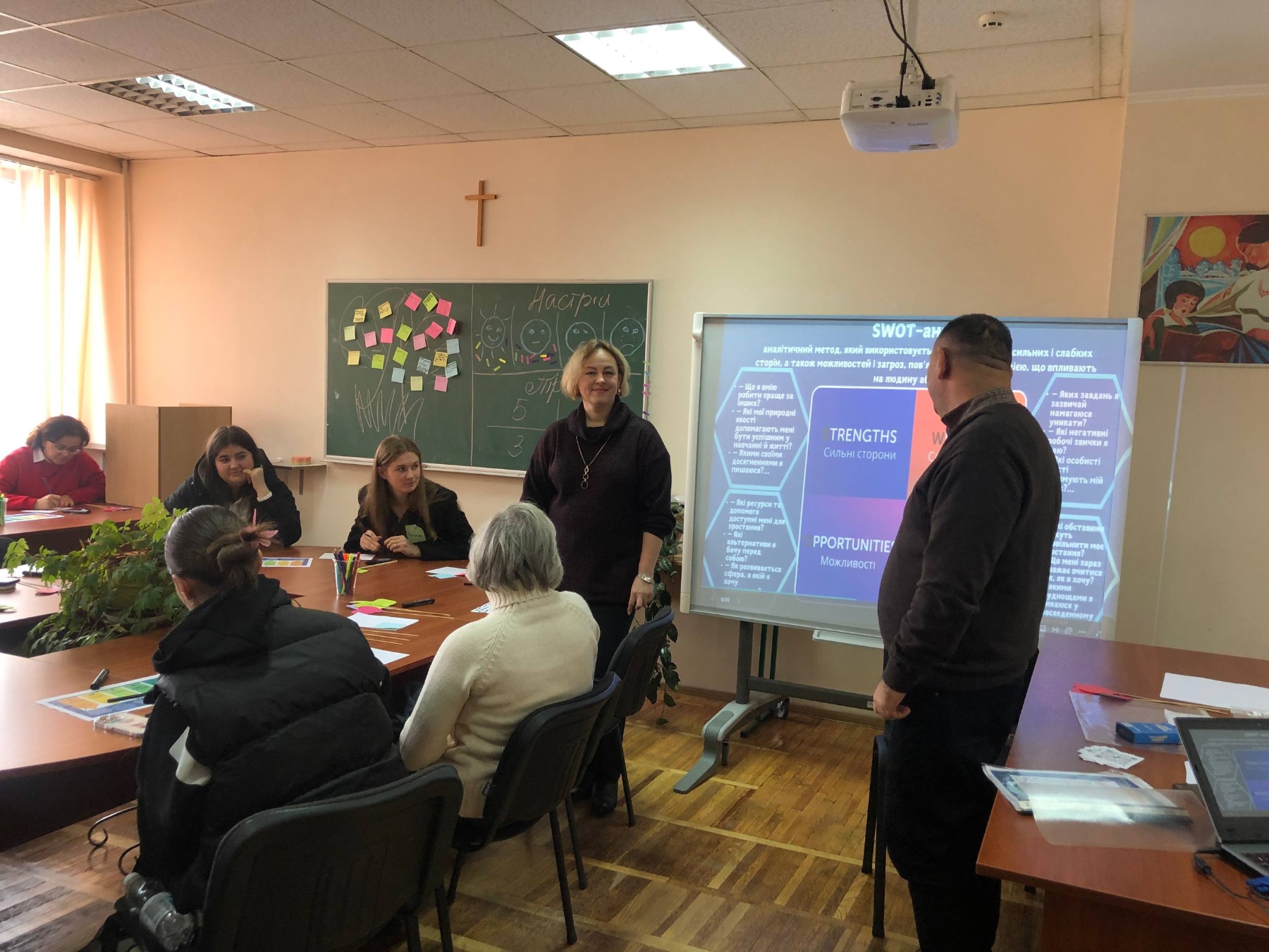 Учасники тренінгу працювали активно й натхненно: виконували вправи на SMART-постановку цілей, проводили SWOT-аналіз власного потенціалу, аналізували групи професій, дискутували про навички майбутнього вмконтексті soft skills та hard skills. Інтерактивні методи, командна взаємодія та відкрите спілкування допомогли молоді краще зрозуміти свої сильні сторони, інтереси й професійні орієнтири.