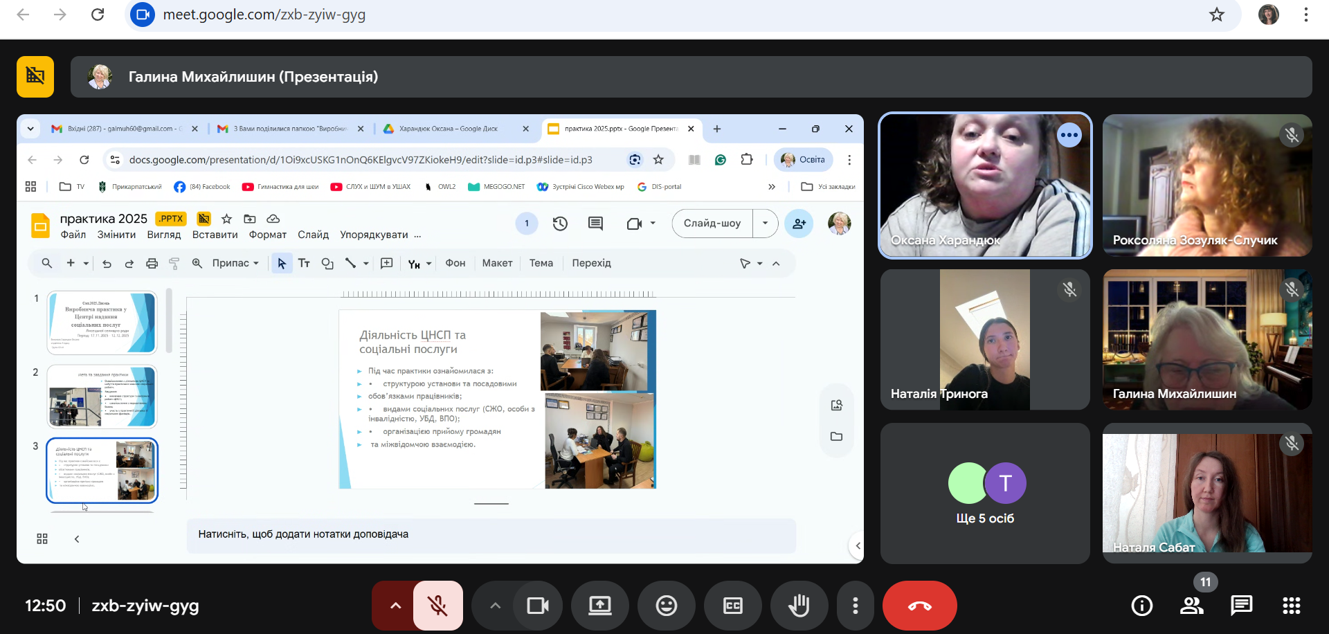 Захист виробничої фахової практики засвідчив належний рівень сформованості фахових компетентностей студентів спеціальності «Соціальна робота» та підтвердив важливість партнерської співпраці кафедри з установами соціальної сфери. Щиро дякуємо керівникам практики й партнерам соціальної сфери за підтримку, професійний супровід і сприяння становленню майбутніх соціальних працівників. Вітаємо студентів з успішним завершенням практики.