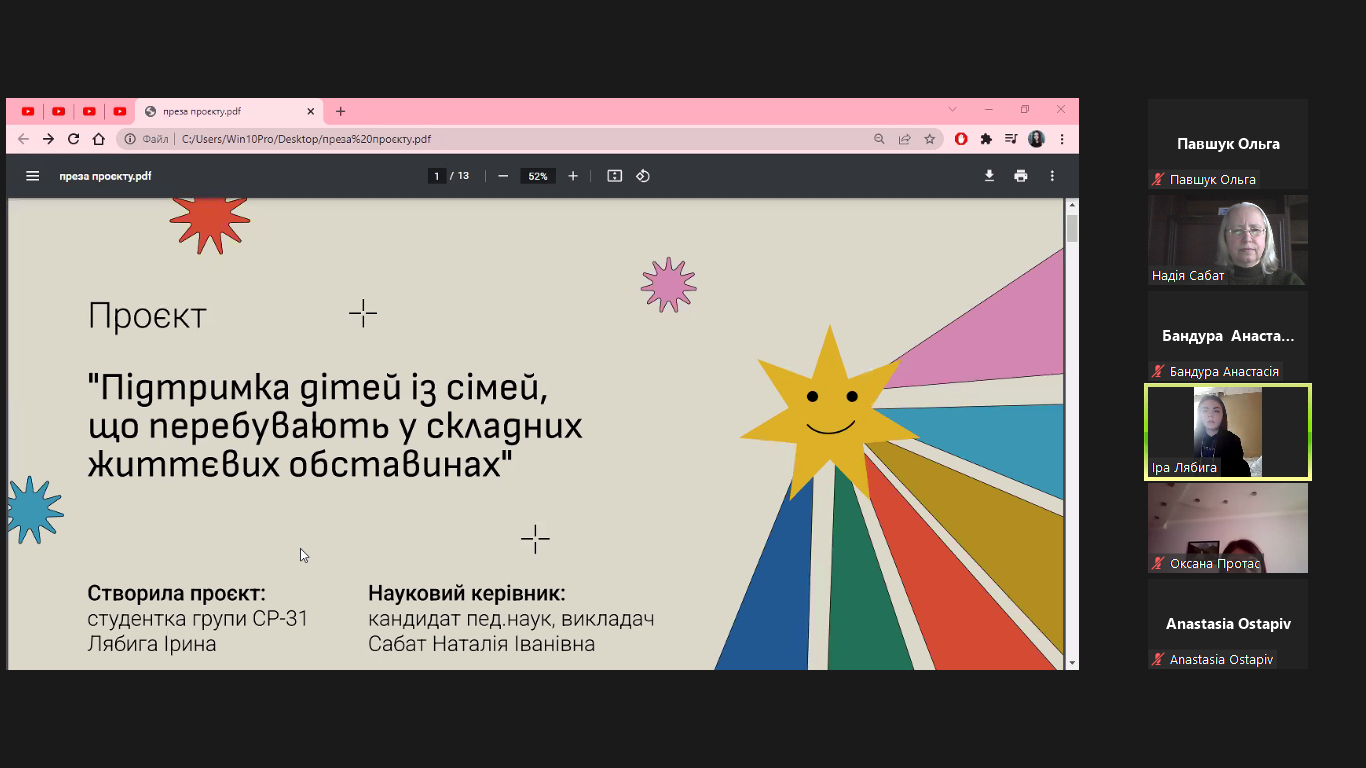 ІІІ місце – Богдан Христина Степанівна (СР-21), Коваль Тетяна Юріївна (СРСП-22), Олійник Оксана Михайлівна (СРСП-22), Рівняк Анастасія Сергіївна (СРСП-22), Халавка Лілія Зорянівна (СР-21).