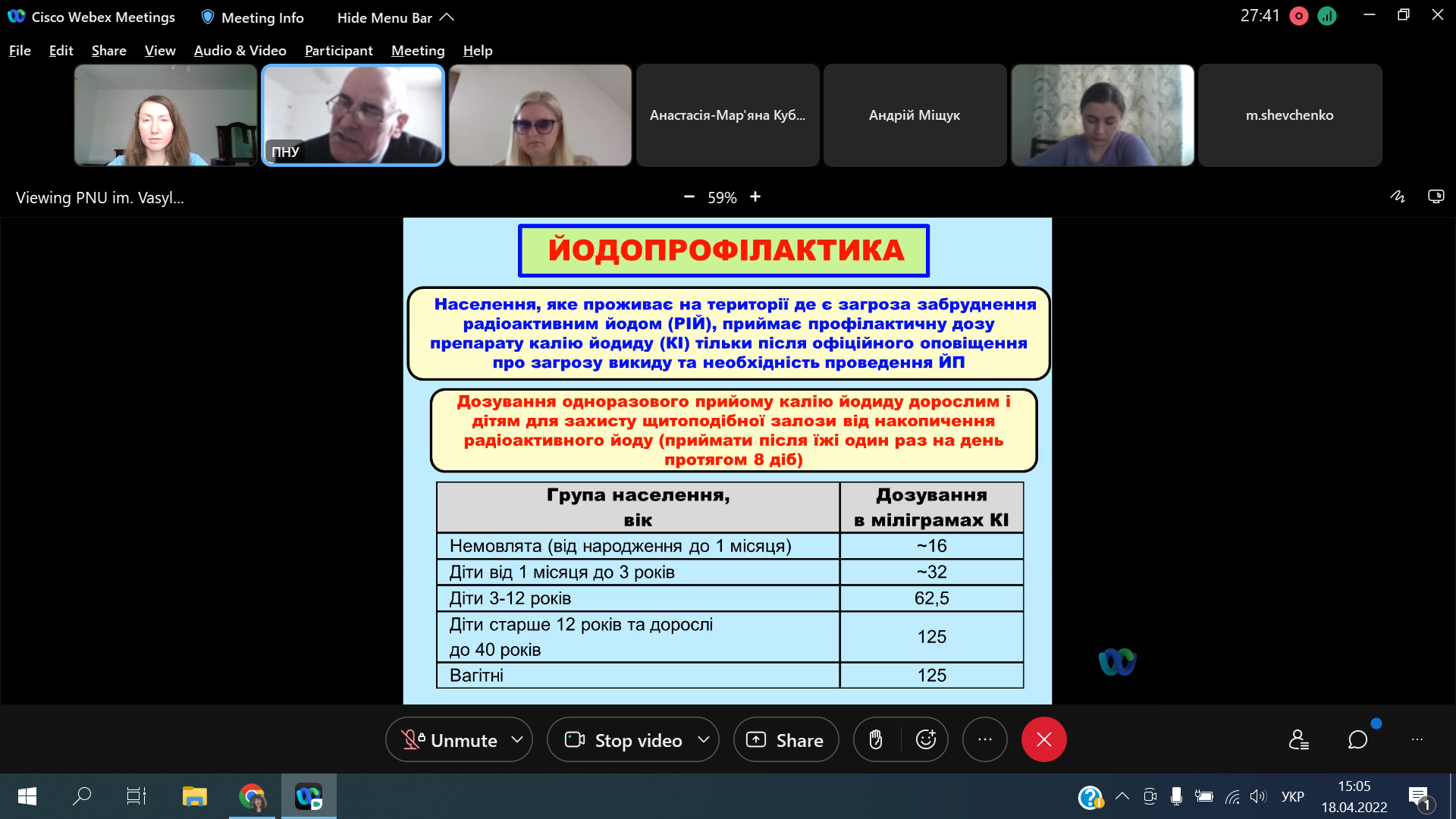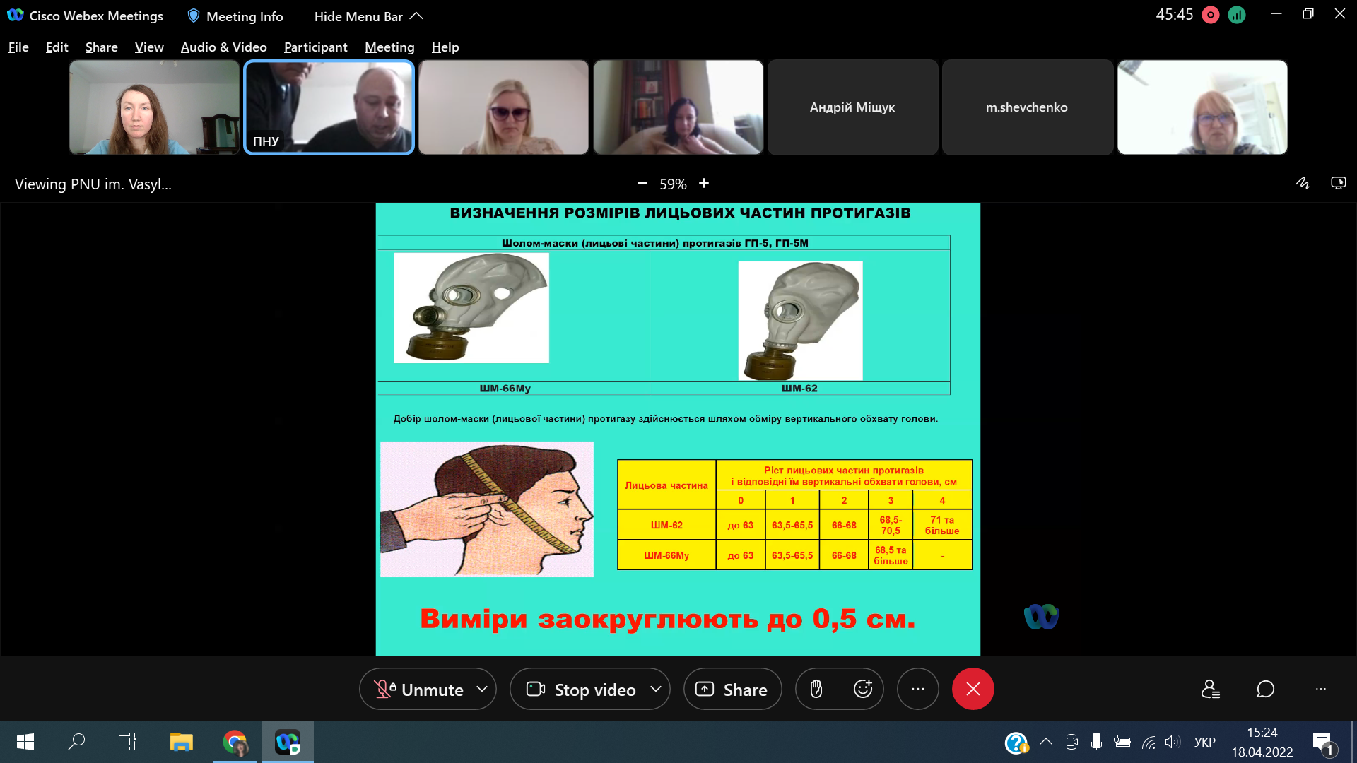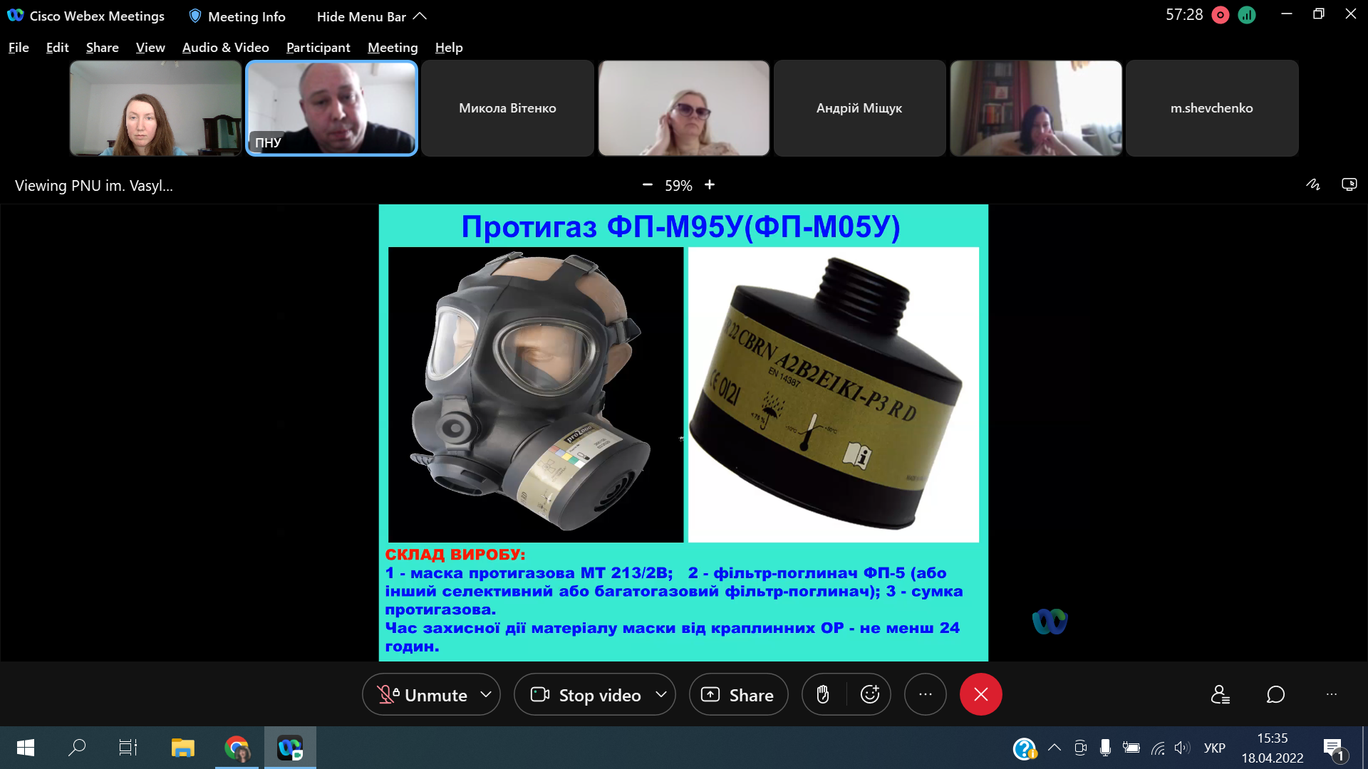 18 квітня викладачі кафедри прослухали інструктаж на тему: “Дії населення у разі застосування зброї масового ураження та застосування засобів індивідуального захисту”, який проводили працівники навчально-методичного центру цивільного захисту та безпеки життєдіяльності в Івано-Франківській області: завідувач Івано-Франківських територіальних курсів цивільного захисту та безпеки життєдіяльності Курилович Володимир Петрович; майстер виробничого навчання курсів Галяс Остап Степанович. Доповідачі ознайомили учасників з протоколом дій при застосуванні хімічної зброї, тактичної ядерної зброї, у разі вибуху на атомній електростанції. А також продемонстрували використання основних засобів індивідуального захисту.