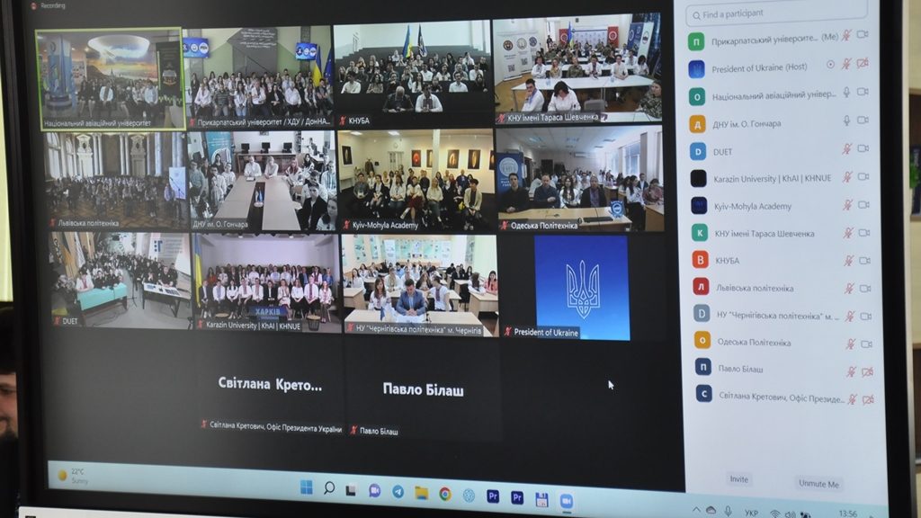 19 травня Прикарпатський національний університет імені Василя Стефаника разом із працюючим на його базі у період воєнного стану Херсонським державним університетом та переміщеною в Івано-Франківськ Донбаською національною академією будівництва і архітектури взяли участь в онлайн-зустрічі Президента України Володимира Зеленського зі студентами закладів вищої освіти України.