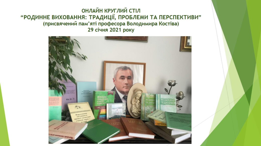 ЗАСІДАННЯ ОНЛАЙН КРУГЛОГО СТОЛУ “РОДИННЕ ВИХОВАННЯ: ТРАДИЦІЇ, ПРОБЛЕМИ ТА ПЕРСПЕКТИВИ”, ПРИСВЯЧЕНОГО ПАМ’ЯТІ ПРОФЕСОРА ВОЛОДИМИРА КОСТІВА