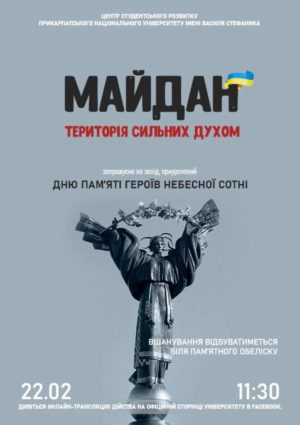 22 лютого о 11:30 год на території Прикарпатського національного університету імені Василя Стефаника відбудеться захід, приурочений вшанування пам’яті Героїв Небесної Сотні. Організатор заходу – Центр студентського розвитку Прикарпатського національного університету імені Василя Стефаника. Онлайн-трансляцію дійства дивіться на офіційній сторінці Прикарпатського Читати далі