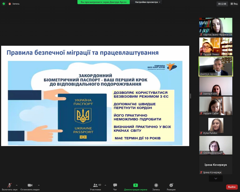 Участь у проєкті «Підвищення обізнаності молоді Івано-Франківської області щодо безпечної міграції та працевлаштування».