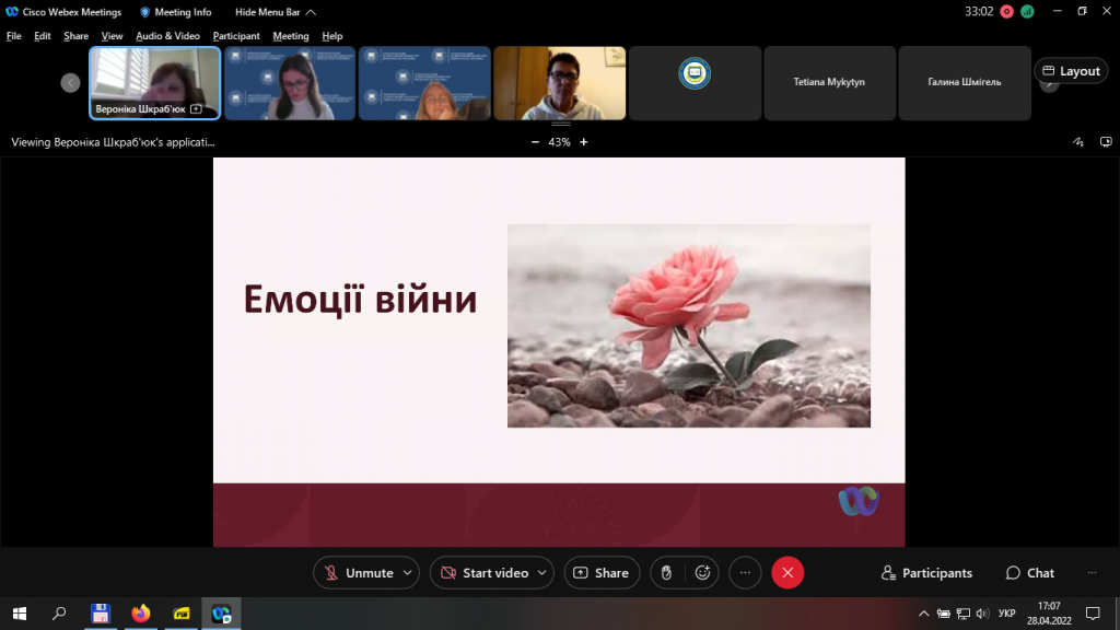 28 квітня викладачі кафедри соціальної педагогіки та соціальної роботи взяли участь у черговій зустрічі в рамках корпоративного соціально-відповідального проєкту «Наше здоров’я». Учасники прослухали лекцію на тему «Емоції війни» від кандидата психологічних наук, доцента кафедри загальної та клінічної психології Вероніки Шкраб’юк, а Читати далі