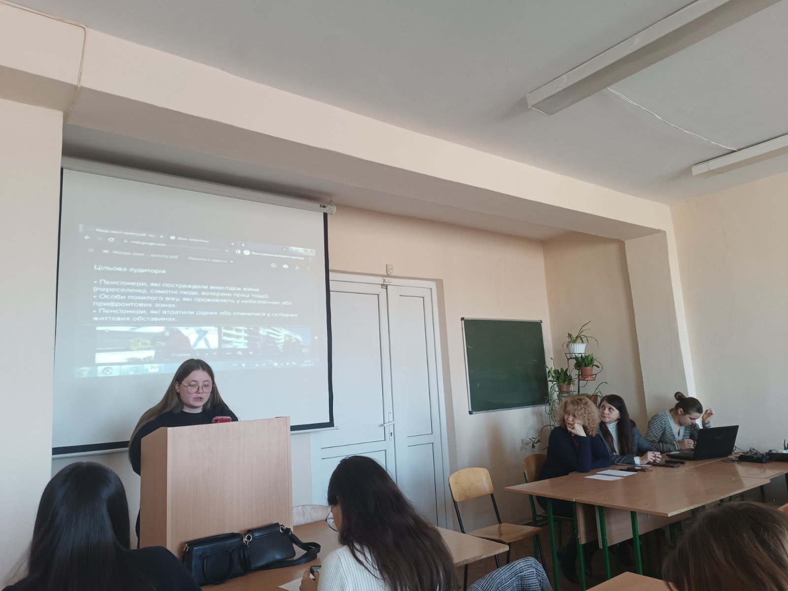 З ініціативи та за підтримки випускника спеціальності «Соціальна робота», аспіранта освітньо-наукової програми «Професійна освіта» Назара Галія проведено конкурс соціальних проєктів за напрямом «Діяльність фахівця соціальної сфери з підтримки ментального здоров’я населення в умовах війни». Здобувачі вищої освіти готували й презентували індивідуальні та колективні соціальні проєкти: «Діяльність соціального працівника з підтримки ментального здоров’я внутрішньо переміщених осіб» (Демидюк В., Руда Н., СР-21), «Керуєш своїми емоціями – керуєш своїм життям» (Кобельська І., СР-21), «Діяльність соціального працівника з підтримки ментального здоров’я осіб з інвалідністю» (Грицило Д., Мамалига А., Прокопів С., СР-21), «Ментальне здоров’я підлітків» (Бараніченко А., СРСП-12), «Підтримка ментального здоров’я дітей з особливими потребами в умовах війни – Сила серця» (Бойчук А., СРСП-12), «Психологічна підтримка ВПО» (Шиян У., СРСП-12), «Підтримка ментального здоров’я пенсіонерів в умовах війни» (Мазур В., СРСП-12), «Субкультури: молодь у пошуках себе» (СР-31, координатор доц. Лідія Тимків) та інші.