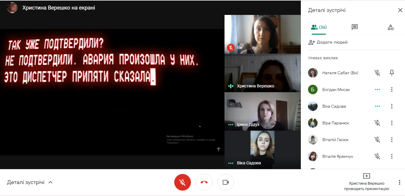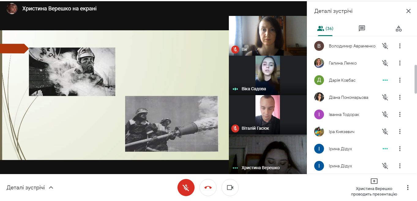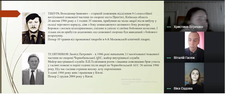 За допомогою презентацій, виступів та художнього слова учасники пригадали обставини трагедії, а також вшанували тих, хто першим долучився до гасіння пожежі. Про величний подвиг ліквідаторів учасникам круглого столу розповідали студенти Віталій Гасюк, Оксана Олійник, Віра Паранюк, Віка Садова, Іванна Тодорак, Іра Хомей. Особливо е моційно насиченим моментом став перегляд фрагменту історичної драми “Чорнобиль” спільного виробництва американського кабельного каналу HBO та британського Sky Atlantic.