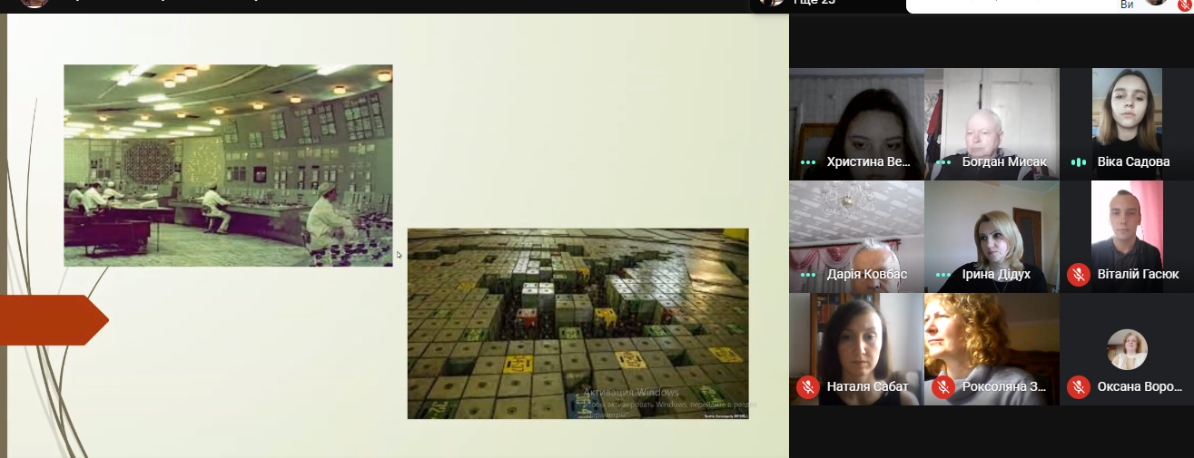 Розмірковуючи над уроками Чорнобиля, Ковбас Б. І. наголосив на потребі переосмислення впливу катастрофи на Україну, адже це не лише трагедія, а й привід для дискусій щодо прав людини, побудови істинно демократичного суспільства. Богдан Іванович поділився спогадами зі свого власного досвіду очільника спортивно-оздоровчого табору “Зірка” (теперішній СОК “Смерічка” в Микуличині) про оздоровлення дітей із зони відчуження та наголосив на унікальному цілющому впливі природи Карпат на організм людини. Розвиваючи тему, Мисак Б. П. закликав студентів ініціювати проведення акцій зі збереження природи, самим бути свідомими громадянами, які б не допустили повторення такого роду трагічних подій у майбутньому.