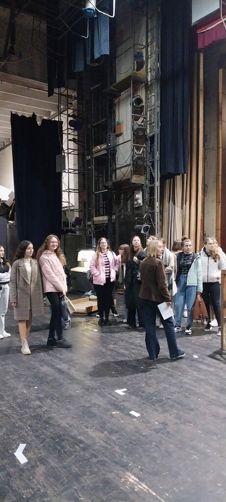 26 жовтня студенти груп СР-11 та СРСП-12 побували на екскурсії в Івано-Франківському національному академічному драматичному театрі імені Івана Франка. Під час екскурсії відвідали кілька сценічних майданчиків театру, зокрема сцену-підвал, яку ще називають “шекспірівська сцена”, адже саме тут ще до повномасштабної війни ставили вистави за Шекспіром: “Гамлета” й “Ромео і Джульєтту”. На “Гамлета” приїжджав і директор Британського шекспірівського центру Майкл Добсон. Його відгук на виставу звучав так: “Я прийшов би до цього міста ще раз пішки, щоби подивитися цього “Гамлета”.