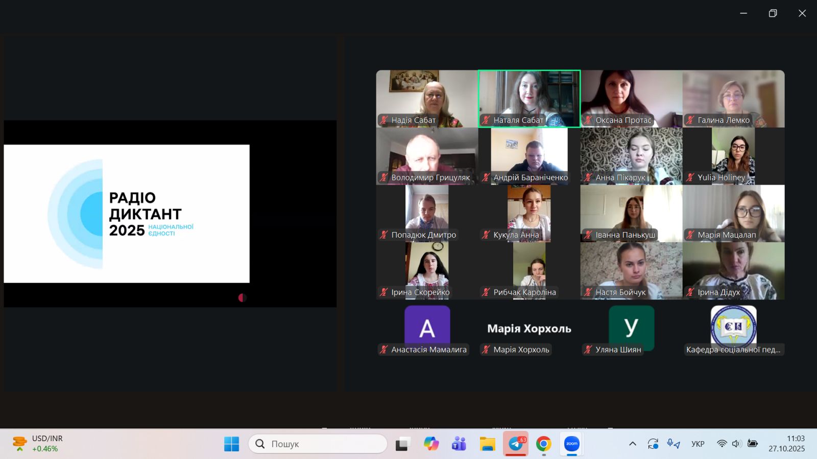 Щороку в День української писемності та мови мільйони українців по всьому світу долучаються до Радіодиктанту національної єдності – символічного дійства, яке об’єднує серця, думки й покоління. Цьогоріч 27 жовтня до цієї загальнонаціональної акції традиційно доєдналися й студенти ОП «Соціальна робота», «Соціальна педагогіка» разом із викладачами кафедри соціальної педагогіки та соціальної роботи Карпатського національного університету імені Василя Стефаника.