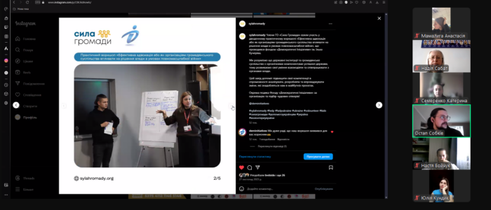 Остап розповів студентам про діяльність неприбуткової громадської організації «СИЛА ГРОМАДИ», історія якої починається від 2008 року, коли її учасники активно займалися розвитком громадянського суспільства та протидією корупції. З 24 лютого 2022 року, зазначив виступаючий, сформовано команду, яка, розширюючись та вдосконалюючись, працює й досі в багатьох різних напрямах, реалізуючи місію: допомагати, розвивати і об’єднувати суспільство, в якому кожна людина займає гідне місце.