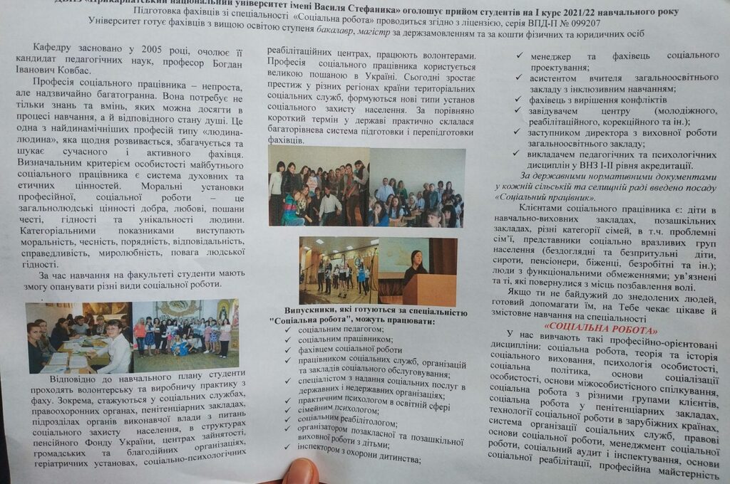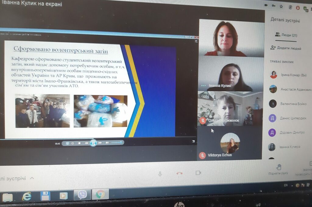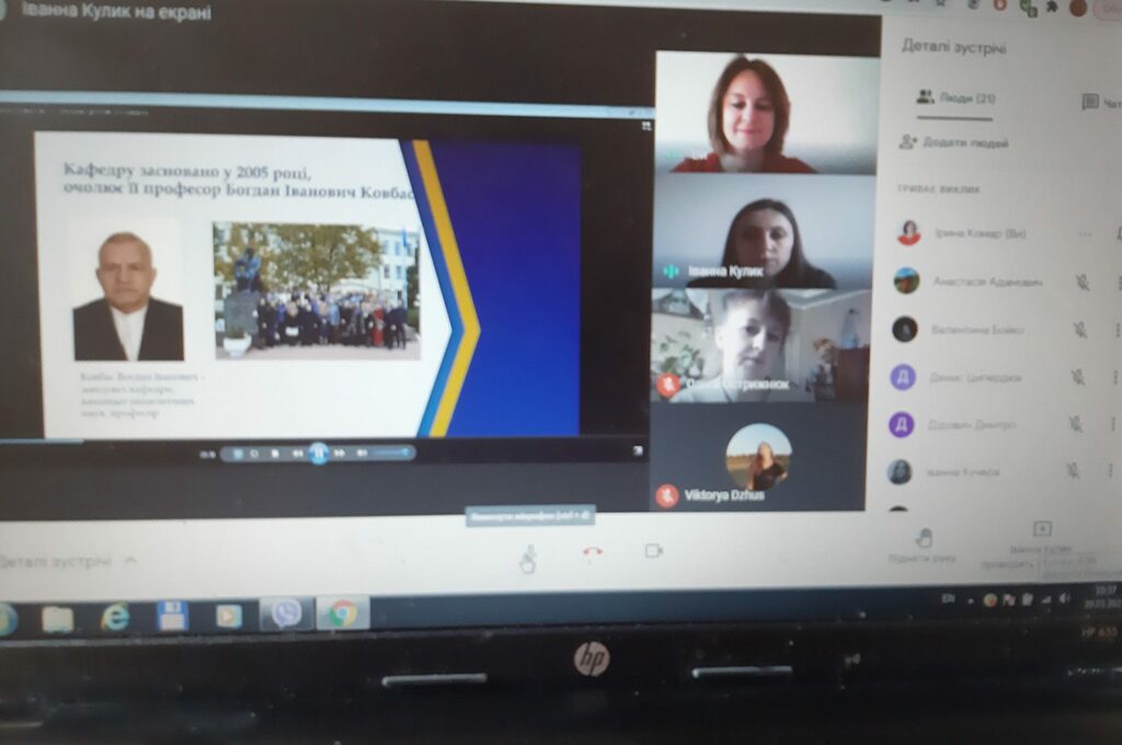 29 березня 2021 року в рамках профорієнтаційної роботи кафедри соціальної педагогіки та соціальної роботи, доцентами Кулик І.В. та Комар І.В. проведено онлайн-зустріч в системі Googl Meet зі старшокласниками Підліського ліцею Загвіздянської сільської ради Тисменицького району Івано-Франківської області. У зустрічі також взяли участь класні керівники 10, 11 класу та соціальний педагог ліцею.